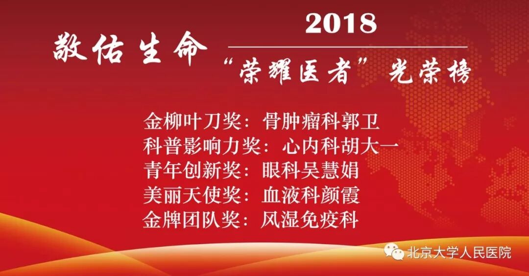 会上,揭晓了 “2018荣耀医者榜单”,北京大学人民医院四位专家和一个团队榜上有名(此处有掌声~~)