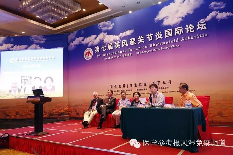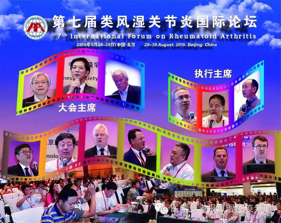 2015年8月29-30日由北京大学医学部主办的第七届类风湿关节炎国际论坛(IFRA)成功召开,来自意大利、德国、美国、日本、英国、澳大利亚、瑞典以及台湾和澳门地区、中国大陆的风湿免疫学界专家共聚一堂,是类风湿关节炎领域内的一场国际盛会,500余人与会。本届大会主席为栗占国教授、Yamamoto K教授、Klareskog L教授,大会执行主席为刘湘源教授、黄慈波教授和王国春教授,邀请包括欧洲风湿病联盟(EULAR)主席Cutolo M,EULAR候任主席Burmester G,APLAR主席Pile KD,EULAR科学委员会主席McInnes I等国际知名专家,以及董怡教授、顾越英教授、吴东海教授、张奉春教授、曾小峰教授、刘良教授等国内知名专家或学者。大会讲者围绕类风湿关节炎的基础与临床展开话题,并与中医专家共同探讨类风湿关节炎诊治的最新进展。