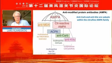 来自瑞典卡罗琳斯卡医学院的Klareskog教授,在1995-2012年期间曾担任诺贝尔委员会委员。Klareskog教授分享的讲课题目为“RA特异性翻译后修饰抗原免疫:起源及潜在功能”。