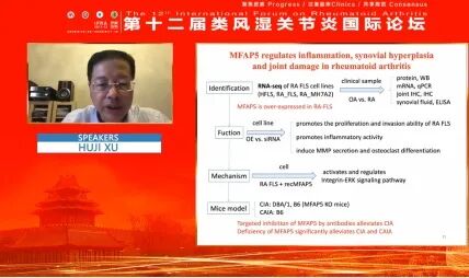 清华大学临床医学院的徐沪济教授的演讲题目为“MFAP5调控RA炎症、滑膜增生和关节损伤”。