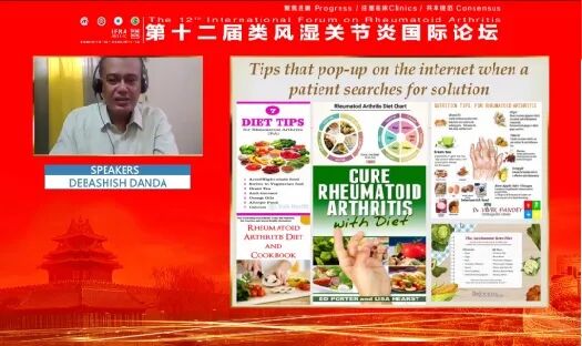 印度基督教医学院风湿病与临床免疫学系主任、亚太风湿病学会联盟的主席Danda教授以“RA患者的饮食调控和治疗”为题,综述了饮食方式和食物对RA患者和正常机体的作用机制,评估了印度人群RA患者与健康人的饮食模式,证明饮食习惯和营养对改善类风湿关节炎病情和预防疾病进展起着重要的作用。